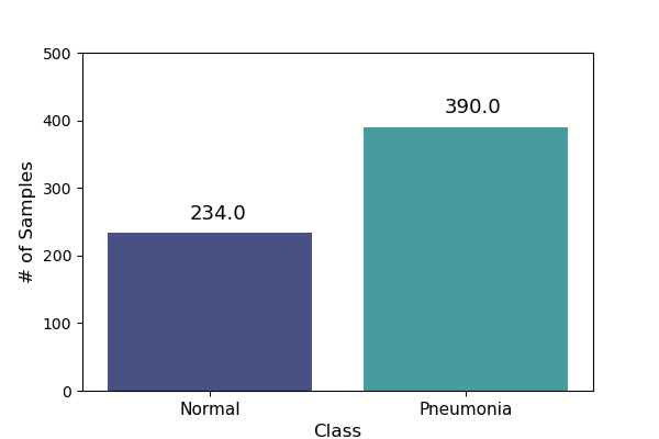 df_test = pd.DataFrame(np.concatenate([['Normal']*len(test_normal) , ['Pneumonia']*len(test_pneumonia)]), columns = ['class'])